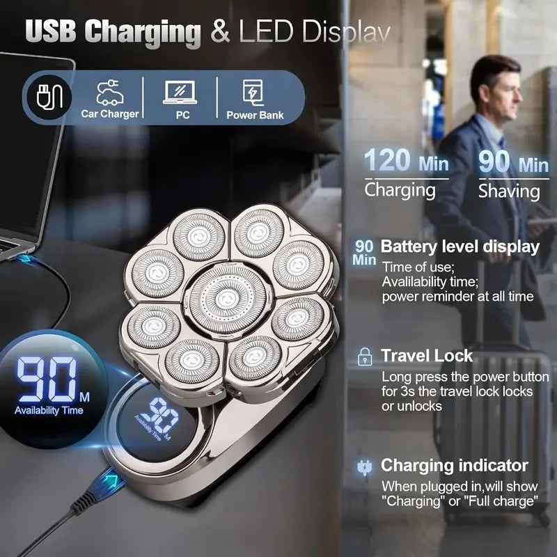 1,Smooth & Fast Shave: Featuring upgraded 9D floating heads that adapt to every curve of your scalp, this shaver delivers an ultra-smooth shave with zero tugging—even over bumps or uneven areas. It's widely regarded as one of the top bald head shavers for men, ensuring a comfortable and precise grooming experience.